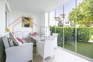 Situado en una posición privilegiada, la propiedad goza de vistas duales con vistas al exuberante campo de golf por un lado y la piscina comunitaria serena en el otro. El apartamento cuenta con una terraza de esquina en forma de L que se ha mejorado con cortinas de cristal, creando un espacio ideal para relajarse o comer al aire libre durante todo el año. Desde todos los ángulos de la terraza, las vistas son simplemente impresionantes.