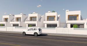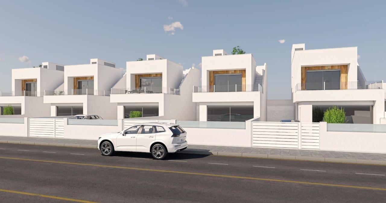 Villas adosadas de nueva construcción con piscina privada en San Pedro del Pinatar Viviendas modernas en una ubicación privilegiada Esta exclusiva promoción de 5 villas adosadas se encuentra en San Pedro del Pinatar, una animada localidad costera de la Costa Cálida. Situadas cerca del polideportivo municipal, a poca distancia del centro de la ciudad y a solo 3,5 km de las playas del Mar Menor y del Mediterráneo, estas viviendas ofrecen la combinación perfecta de comodidad, conveniencia y estilo de vida mediterráneo. Diseño contemporáneo y distribución funcional Cada villa se distribuye en dos plantas y está diseñada con una arquitectura moderna, maximizando el espacio y la luz natural. Con 3 dormitorios y 2 baños, estas propiedades son ideales para familias, como residencias vacacionales o como inversión. Planta baja: cocina abierta conectada con el luminoso salón-comedor, un dormitorio, un baño, un patio trasero y acceso directo al jardín privado con piscina. Primera planta: dos dormitorios adicionales, un cuarto de baño y una amplia terraza con acceso al solárium privado de la azotea, perfecto para tomar el sol o recibir invitados. Acabados de calidad y comodidad Las villas se entregan con especificaciones de alta calidad y detalles cuidadosamente pensados para garantizar una vida moderna: Cocina totalmente amueblada y equipada con electrodomésticos Piscina privada y jardín Solárium en la azotea para disfrutar al aire libre durante todo el año Cocina de verano incluida Paquete de iluminación interior y exterior Garaje privado cerrado San Pedro del Pinatar: estilo de vida y alrededores San Pedro del Pinatar es conocido por su sol durante todo el año, sus playas de arena y sus paisajes naturales, como el famoso Parque Natural de las Salinas y Arenales. La localidad ofrece todos los servicios esenciales, incluyendo tiendas, supermercados, restaurantes, centros de salud e instalaciones deportivas, lo que la convierte en un lugar excelente tanto para vivir como para pasar las vacaciones. Distancias a puntos de interés clave: Playas del Mar Menor – 3,5 km Centro comercial Dos Mares – 5 km Puerto deportivo de Lo Pagán – 4 km Roda Golf – 8 km Aeropuerto de Murcia (Corvera) – 35 km Aeropuerto de Alicante – 75 km Asegúrese su nueva vivienda junto al mar Estas villas adosadas de nueva construcción en San Pedro del Pinatar combinan un diseño moderno, acabados de alta calidad y una ubicación privilegiada cerca del mar y de todos los servicios. Póngase en contacto con nosotros hoy mismo para obtener más información o concertar una visita y dar el primer paso hacia la casa mediterránea de sus sueños.