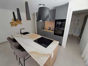 Las casas han sido construidas pensando en la naturaleza. Las paredes parciales de piedra natural le dan un carácter distintivo y cálido y ayudan a que se mezclen con la zona montañosa que hay detrás.