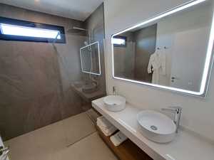 Las casas han sido construidas pensando en la naturaleza. Las paredes parciales de piedra natural le dan un carácter distintivo y cálido y ayudan a que se mezclen con la zona montañosa que hay detrás.
