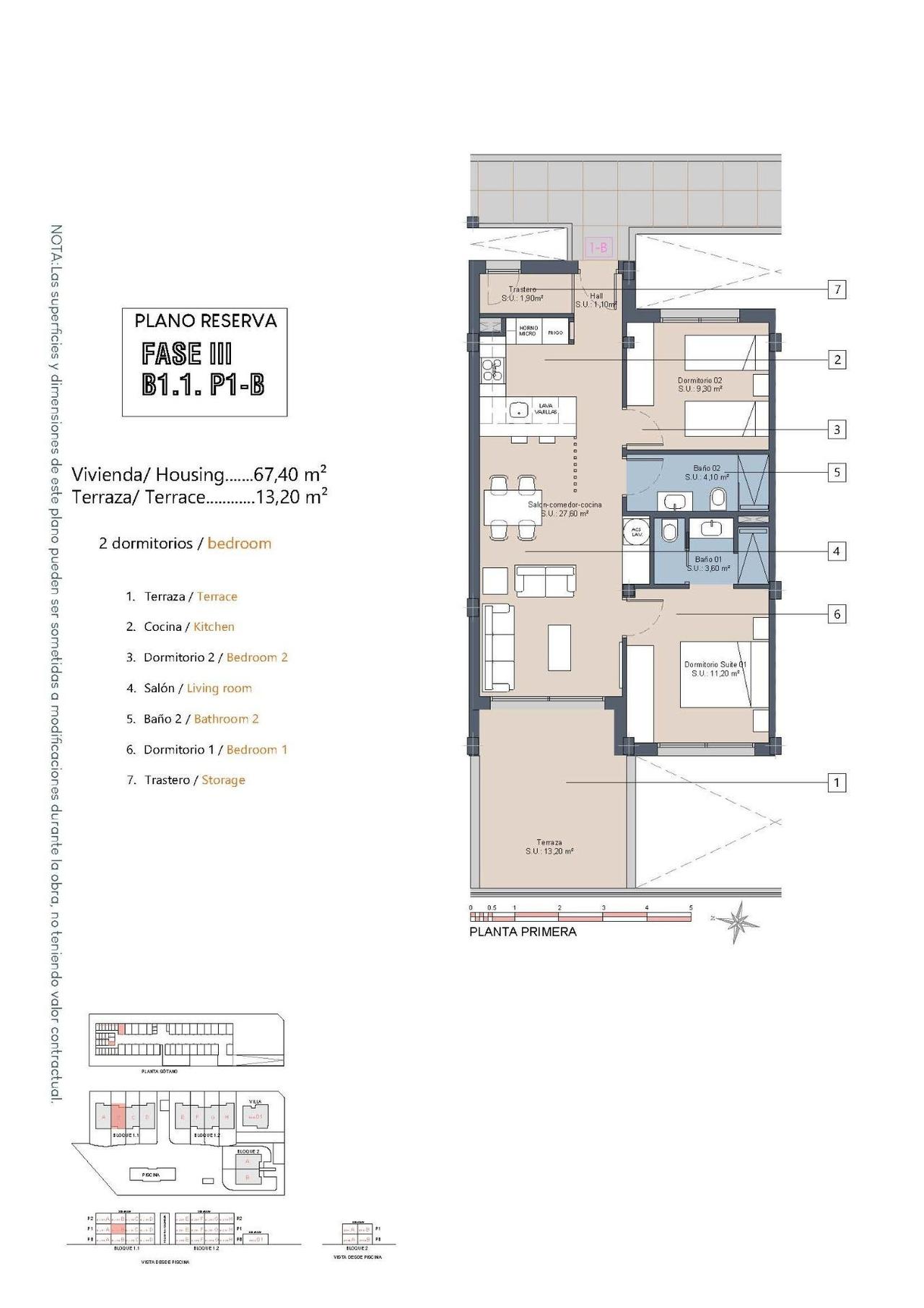Complejo residencial de nueva construcción cerca de Serena Golf y el Mar Menor en Los Alcázares Vida moderna en la costa de la Costa Cálida Descubra este atractivo complejo residencial de nueva construcción situado en Los Alcázares, una de las localidades costeras más populares de la Costa Cálida. Situado a solo 500 m de las playas del Mar Menor y a poca distancia del centro de la ciudad, este complejo ofrece una excelente combinación de vida costera, entorno de golf y comodidades cotidianas. Los Alcázares es conocido por su ambiente relajado, sus largos paseos marítimos, sus cálidas aguas poco profundas y una amplia gama de restaurantes, tiendas y servicios abiertos todo el año. Apartamentos contemporáneos diseñados para el confort La promoción consta de 29 viviendas modernas de 2 o 3 dormitorios, diseñadas con líneas arquitectónicas limpias y acabados de alta calidad. Los compradores pueden elegir entre apartamentos en planta baja con jardín y terraza privados, viviendas en plantas intermedias con amplias terrazas o áticos con terraza privada y solárium en la azotea con vistas panorámicas. Muchas de las propiedades disfrutan de vistas al campo de golf Serena y al Mar Menor, lo que crea un entorno tranquilo y agradable. Todas las viviendas están diseñadas para maximizar la luz natural y la funcionalidad, lo que las hace ideales como residencia permanente, vivienda vacacional o propiedad de inversión. Características de alta calidad y zonas comunes Cada propiedad incluye una plaza de aparcamiento privada y un trastero. Las especificaciones están diseñadas para proporcionar comodidad y eficiencia energética, incluyendo ventanas de doble acristalamiento con rotura de puente térmico, preinstalación de aire acondicionado por conductos, sistema aerotérmico para agua caliente sanitaria, persianas eléctricas en los dormitorios y un completo paquete de iluminación interior y exterior. Los baños se entregan totalmente equipados con muebles, espejo y mampara de ducha. Los residentes pueden disfrutar de atractivas zonas comunes con jardines y una piscina comunitaria, perfectas para relajarse y disfrutar del clima mediterráneo. Algunos bloques están equipados con ascensores para mayor comodidad. Ubicación privilegiada entre el golf y el mar Este complejo residencial goza de una ubicación privilegiada junto al Serena Golf, uno de los campos de golf más famosos de la zona, y a pocos pasos de las tranquilas aguas del Mar Menor. La zona es ideal para practicar natación, vela, paddle surf y otros deportes acuáticos durante todo el año. Las distancias clave incluyen las playas del Mar Menor a 0,5 km, Serena Golf justo al lado de la urbanización, el centro de Los Alcázares a 2 km, Cartagena a 22 km y la ciudad de Murcia a 40 km. El aeropuerto de Murcia Corvera está a unos 30 km y el de Alicante a unos 90 km. Una vivienda ideal o una oportunidad de inversión Con su excelente ubicación, su diseño moderno y su proximidad tanto al golf como al mar, este nuevo complejo residencial en Los Alcázares ofrece una oportunidad excepcional para disfrutar de un estilo de vida excepcional en la Costa Cálida. Póngase en contacto con nosotros hoy mismo para recibir más información o concertar una visita privada y asegurarse su nueva vivienda junto al Mar Menor.